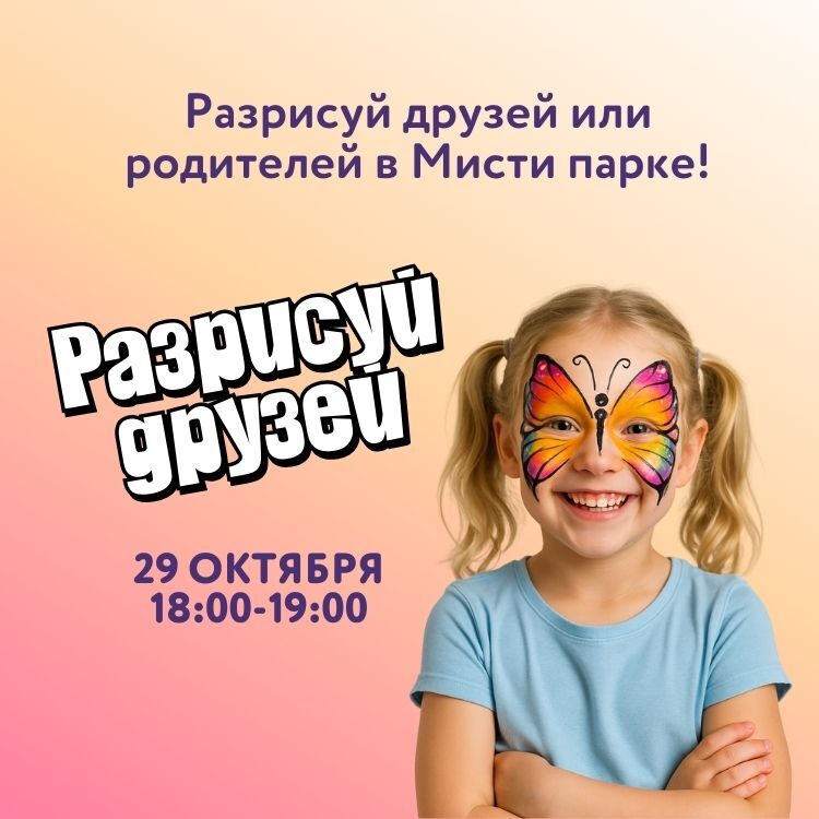 29 октября в 18:00 в Мисти Парке осваиваем мастерство аквагрима под руководством наших опытных художников! Разрисуем вместе друзей и родителей? Жду-у-у тебя в Мисти Парк!