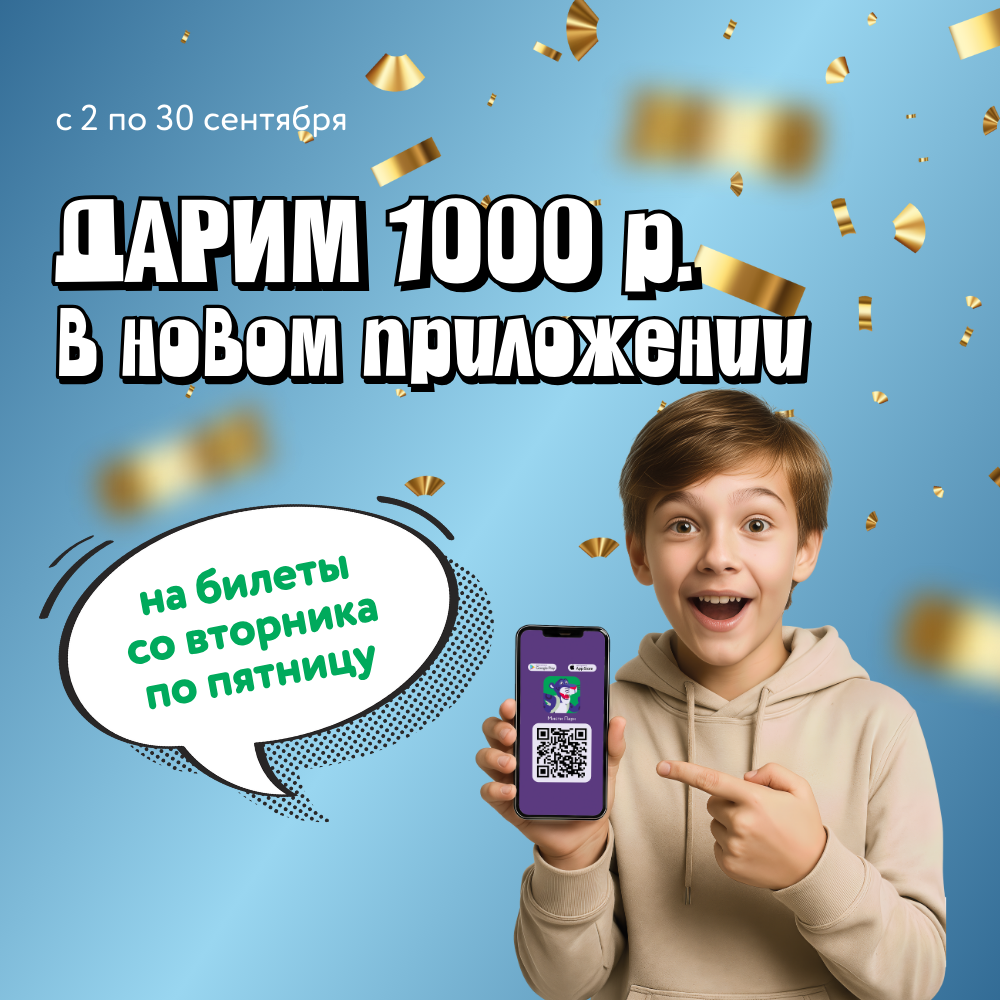Со вторника по пятницу — дарим 1000 бонусов в мобильном приложении Мисти Парка! 🎉